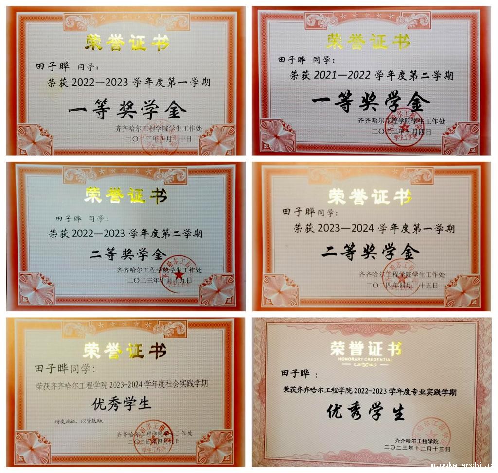 在校期间,田子晔始终以高度的热情和专注投入在学习中。课堂上,他紧跟老师的讲解,不放过任何一个知识要点。课后认真复习,凭借刻苦与执着,他的学业成绩在班级里名列前茅,获得学校一等奖学金三次、二等奖学金四次,2024年度丁香学子、2022年度三好学生。这些荣誉不仅是对他努力学习的肯定,更是激励他不断前行的动力。