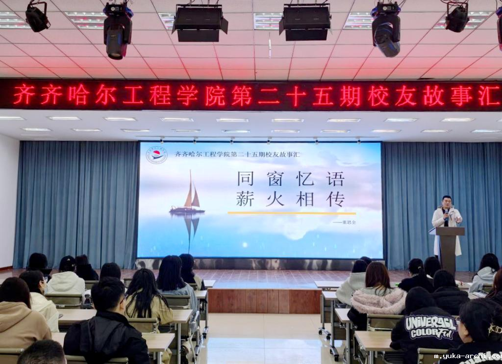 4月13日,学校在二号教学区2508会议室举办第二十五期校友故事汇。建筑管理工程系邀请2013届优秀毕业生董思全以“同窗忆语、薪火相传”为题,为大三、大四180余名学生分享职业经历。