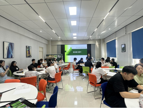 研修生院邀请学生发展中心教师张贺,开展就业能力提升沙盘训练,培训以“产品生产与销售全流程模拟”为核心载体,通过沉浸式场景演练,让研修生了解生产经营模式,提升学生沟通技巧与团队协作能力。并在总结中强调真实职场中,没有完美的个体,只有高效的团队。希望研修生在工作岗位中快速融入团队并成为团队中骨干力量。