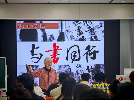 许长艳在第二次讲座中以“世界读书日” 为引,以苏子瞻 “腹有诗书气自华” 为主题,带领众人深入了解华夏文学,分享自身从青年工人到全日制学生的奋斗经历,强调读书对命运的重塑作用。讲座最后,许长艳将 “与书同行,走向未来” 八字赠予学生。希望大家制定阅读计划,让读书成为一种生活方式、一种精神追求,使读书成为加强修养的重要途径,成为拓宽视野、提升能力的关键环节,在爱读书、读好书、善读书中提高思想水平、实现自我超越。