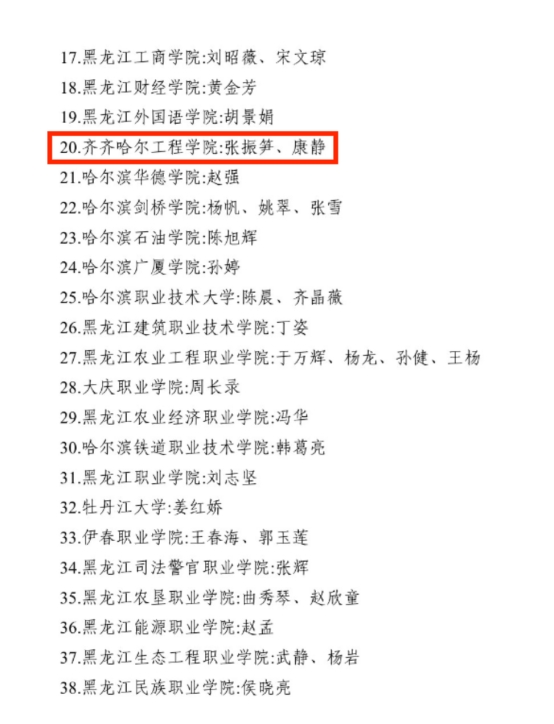 10月27日,黑龙江省教育厅传来喜讯,在《关于公布第四届黑龙江省高校就业创业指导教师专家库专家的通知》中,我校监事会主席张振笋、学生发展中心主任康静凭借深厚的专业素养和丰富的实践经验,成功入选,荣聘为第四届黑龙江省高校就业创业指导教师专家库专家。